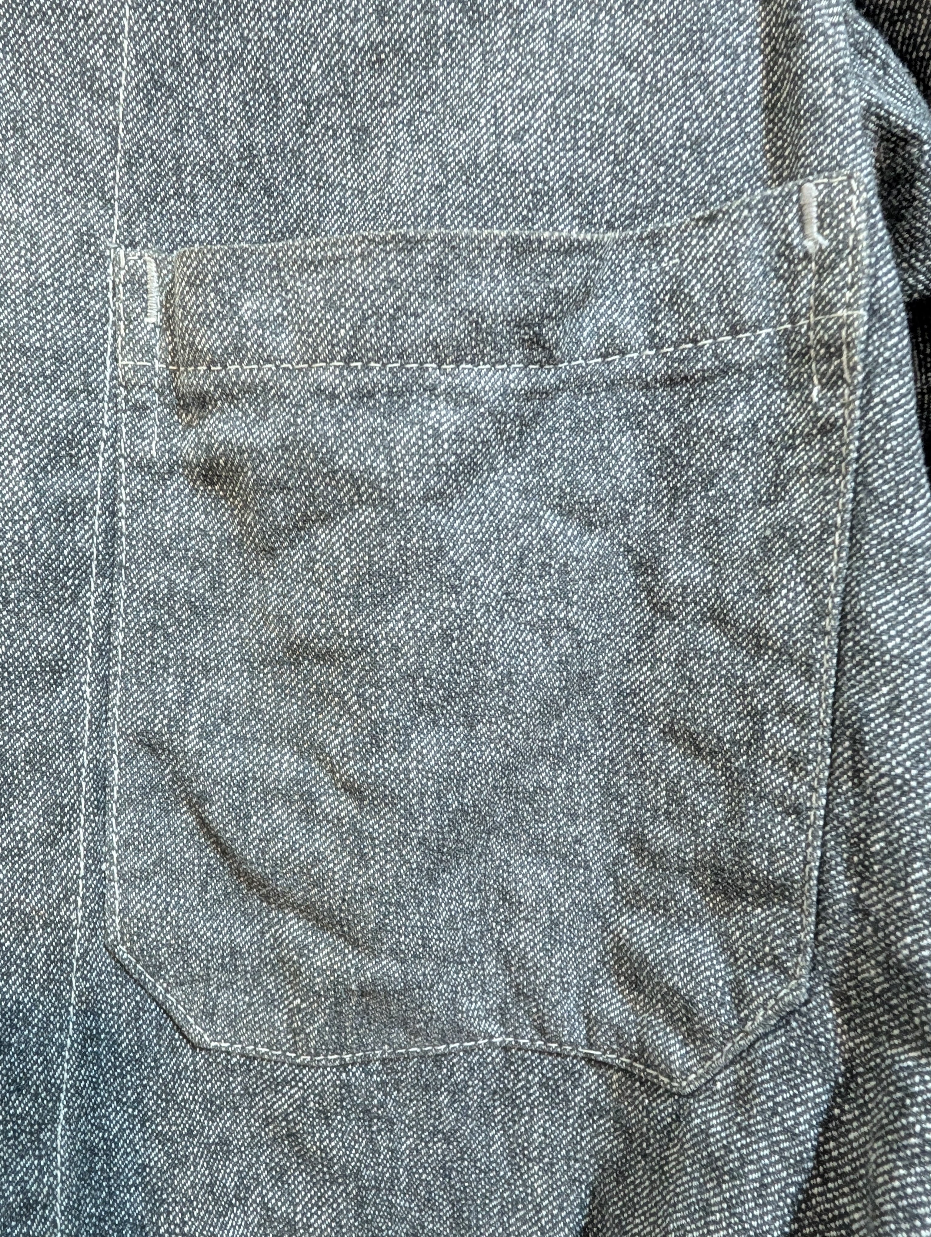 ヴィンテージとして状態が良く、ブラックシャンブレーの特有の生地感をお楽しみいただけます。