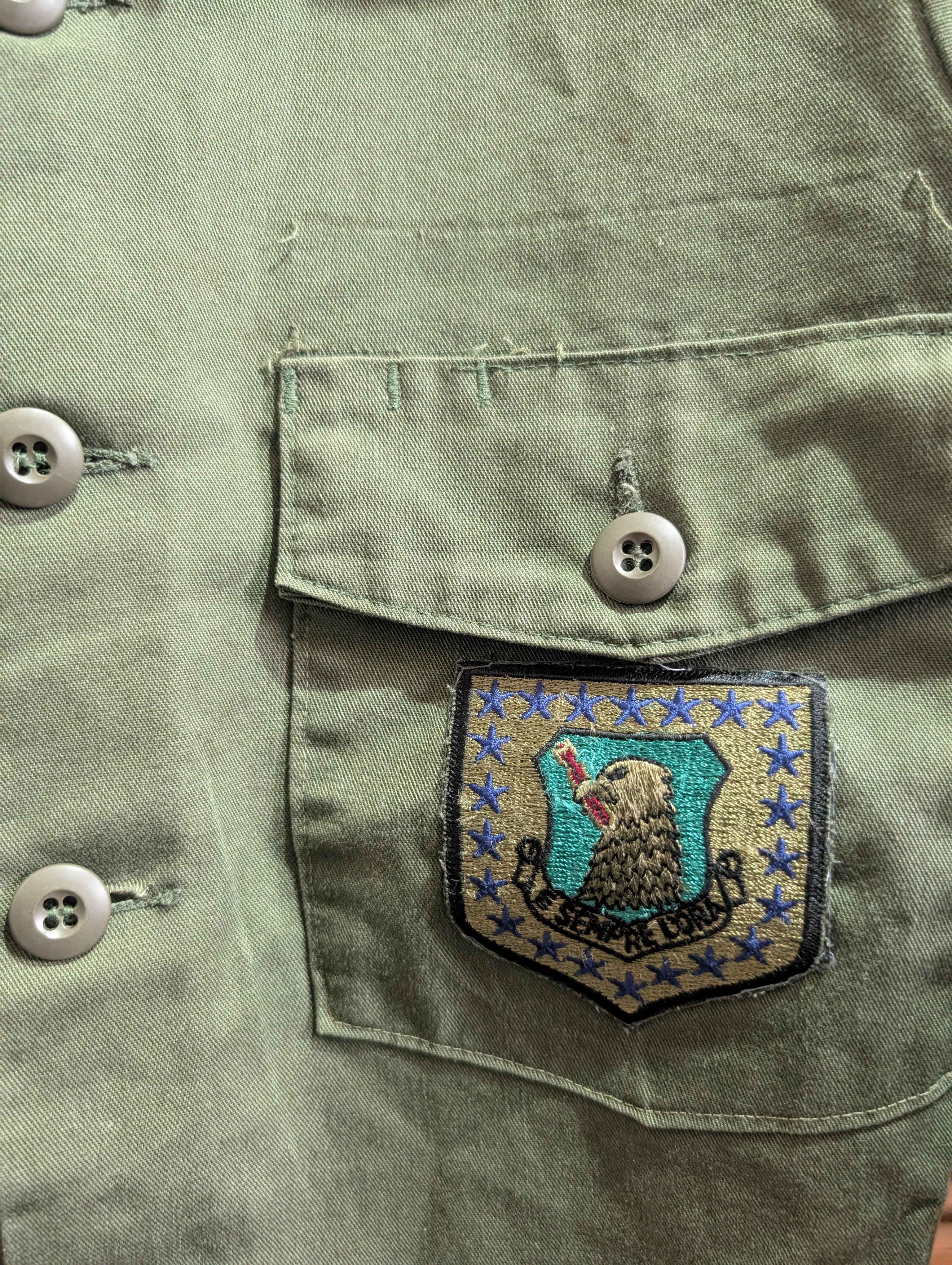 ワッペンがついており、デザイン性があるので、1枚で前を閉じてでも、ライトアウターとして羽織る形でも活用いただけるかと思います。