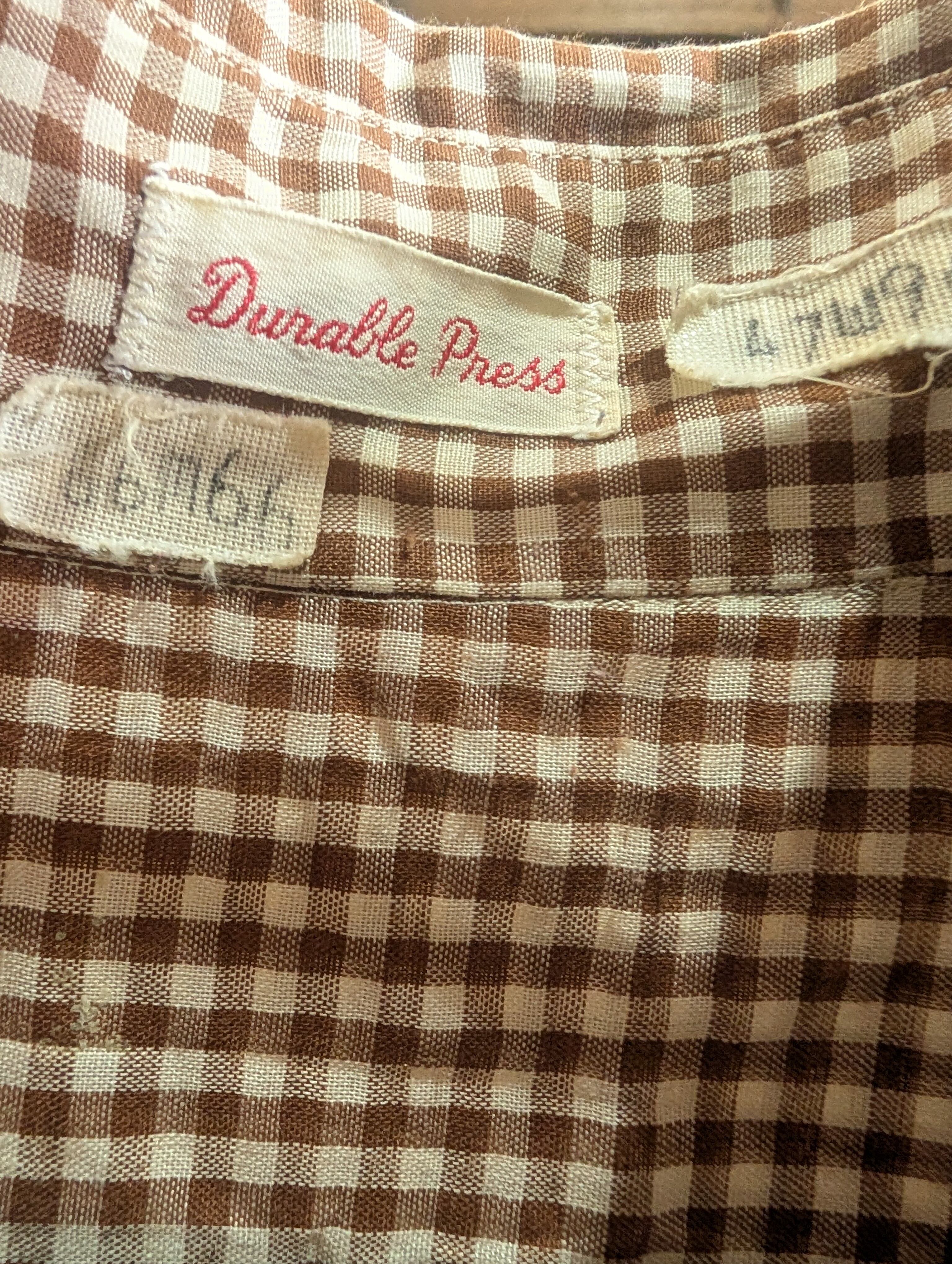 60s USA Brown GinghamCheck Shirt DurablePress