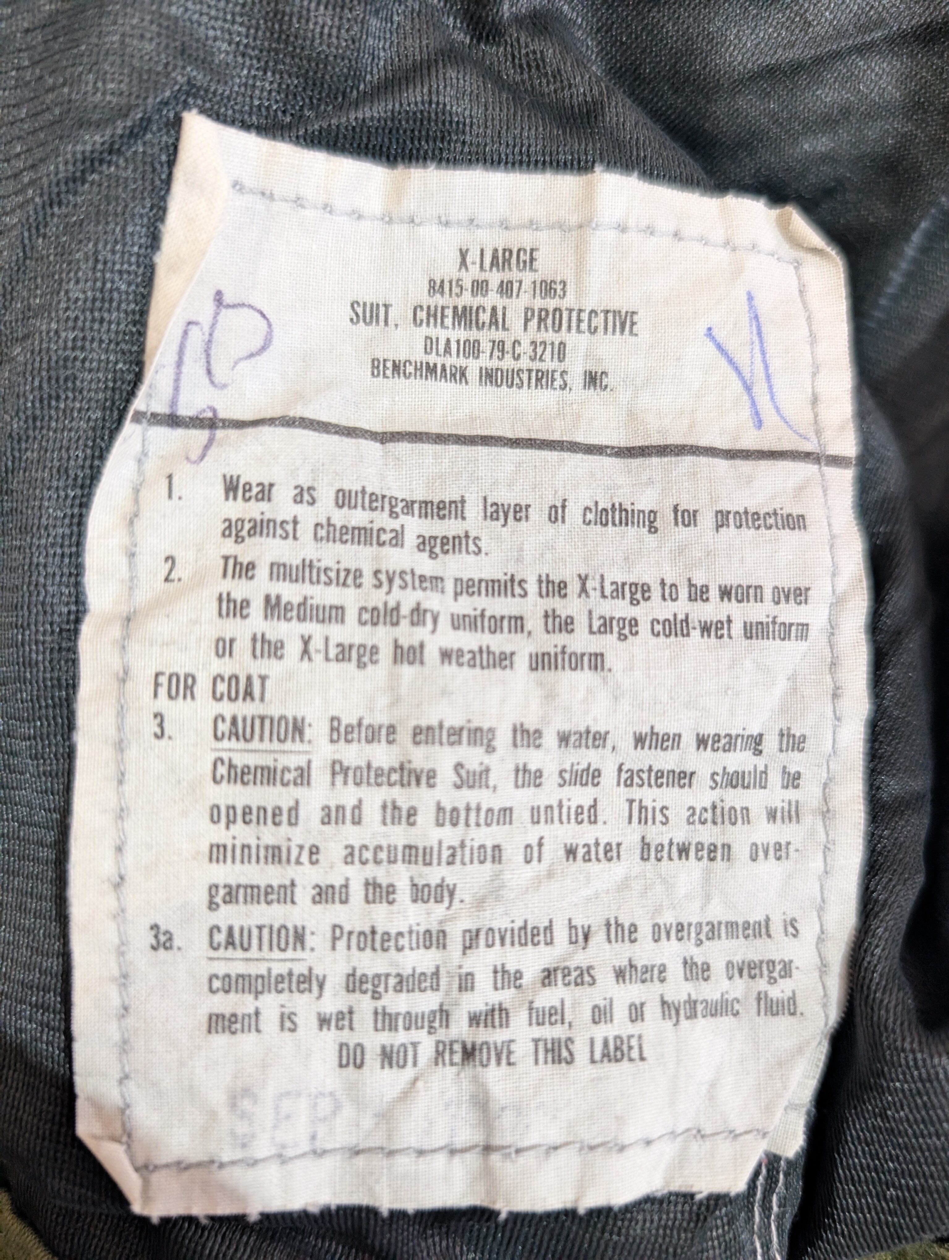 1979年アメリカ軍の対化学兵器用ジャケットになります。