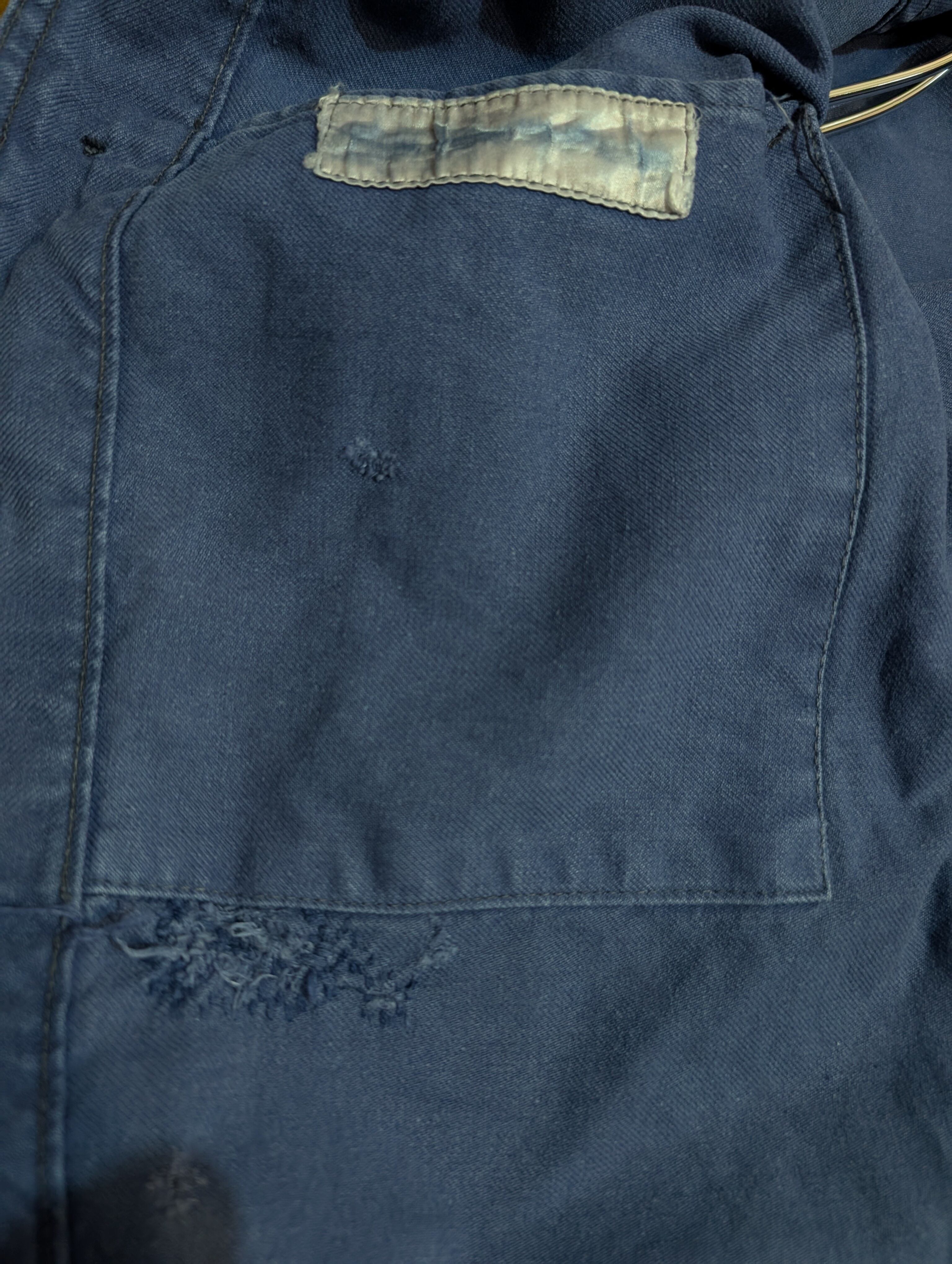 60s France CottonTwill Work Jacket PrintTag Repaired Faded